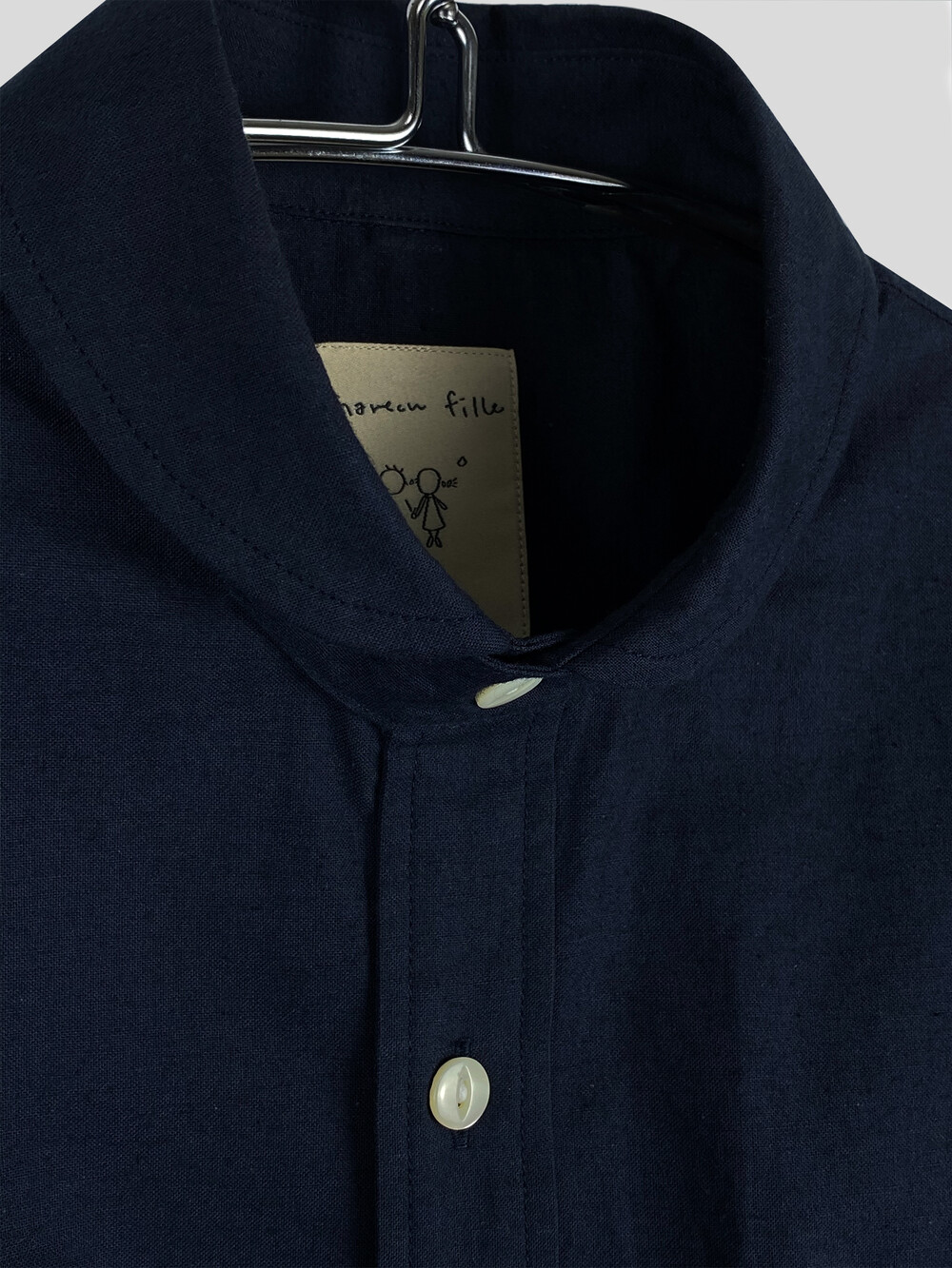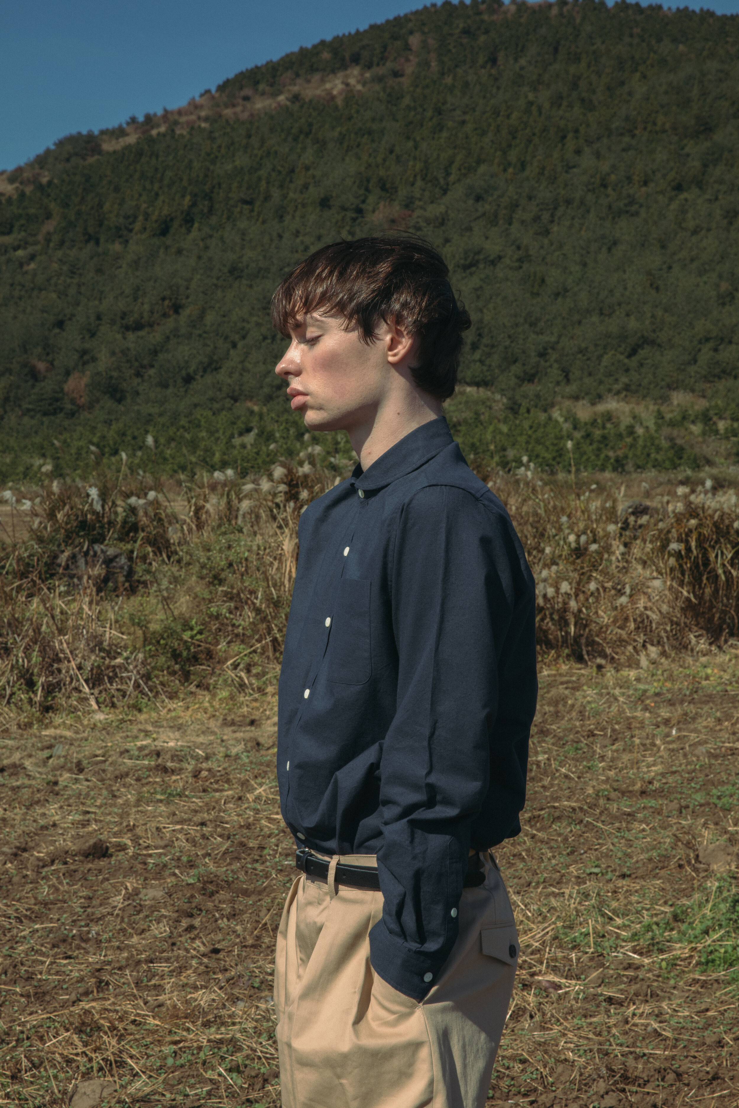 Untitled shirt #3은 라운드 카라 세미 루즈 핏 셔츠입니다. 천연소재가 가지는 풍푸한 표정을 표현하기 위하여 오랜 시간 수작업 염색을 통하여 생산된 100% 면을 사용하여 제작된 셔츠이며 특수 건조 후가공을 통하여 특유의 질감과 색감을 겸비하고 있습니다. 상의를 넣어 입거나 빼내어 입어도 만족할 수 있도록 설계되었습니다. 옆면 밑단에 거셋 디테일을 추가하여 내구성을 강화하였으며 단추는 100% Shell(자개)를 사용하였습니다. 세월이 지나면 변화하는 우리들의 모습과 같이 세월이 지날수록 자연스럽게 생기는 워싱과 주름이 주는 아름다움을 표현할 수 있는 셔츠입니다.